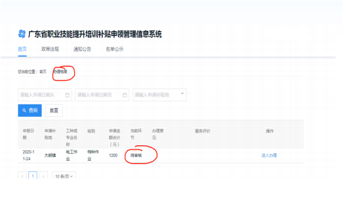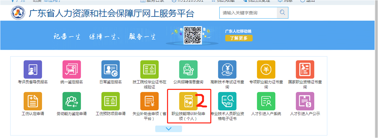 登陸廣東省人力資源和社會保障廳網上服務平臺(http://ggfw.gdhrss.gov.cn/YCZG)