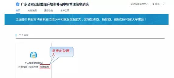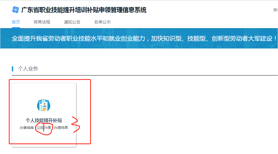 第三步:選擇“個人技能提升補貼”點擊“立即辦理”進入。