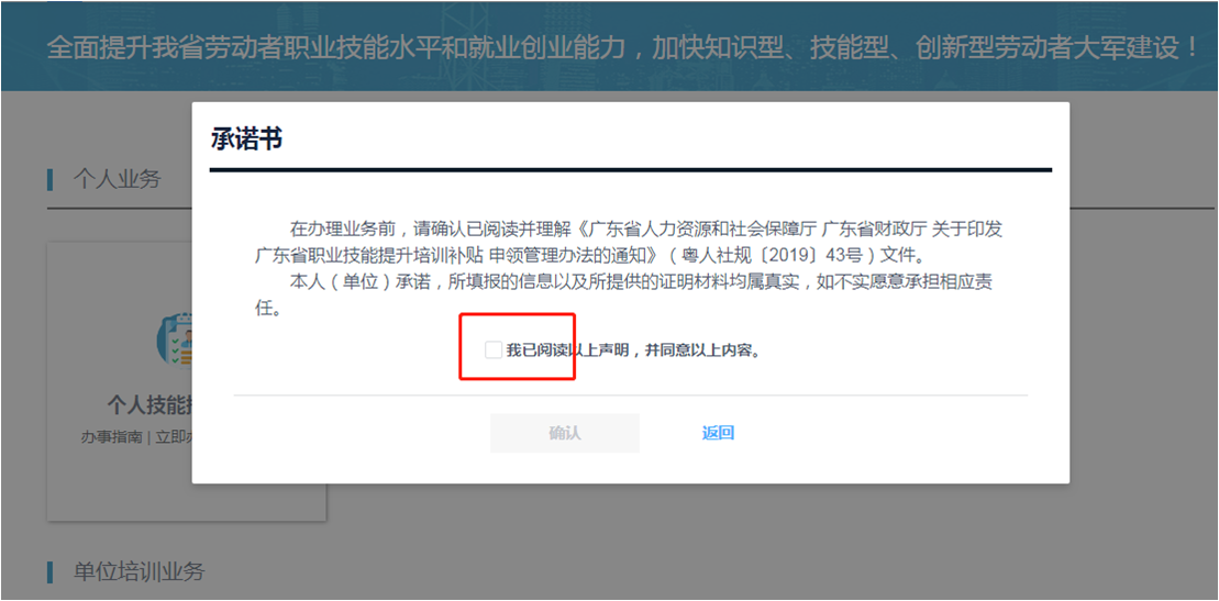 第四步:點擊“我已閱讀以上聲明,并同意以上內容”,再點擊“確認”。