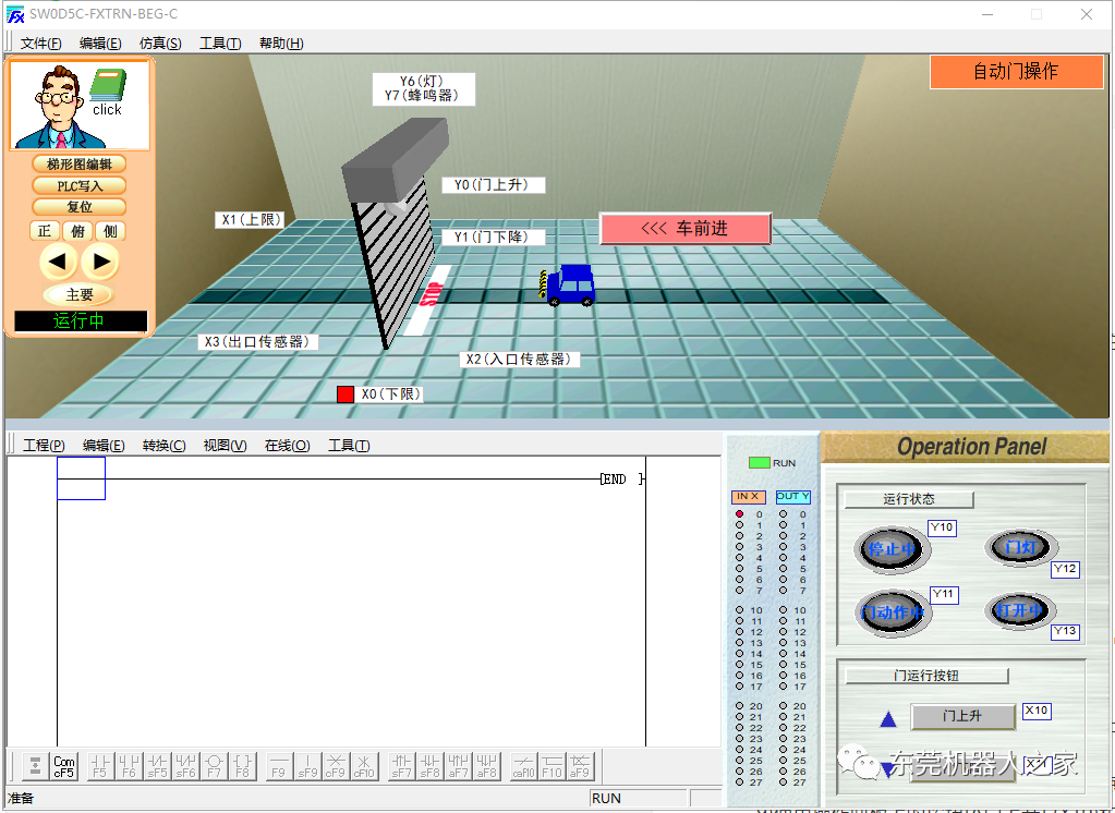 結(jié)果>>只要按下[▲門上升] (X10)和[門下降](X11)按鈕就可以手動(dòng)打開或關(guān)閉自動(dòng)門。